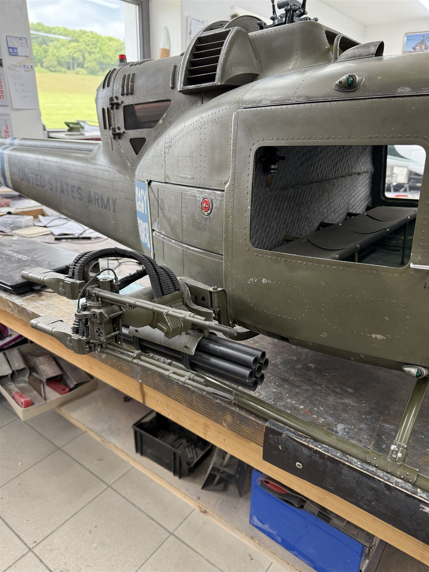 Für die Bell 204-B gibt es ein full scale Cockpit das mit der heute zu verfügung stehenden 3-D Drucktechnik dem Original in nichts nachsteht. Die Nachbildung d