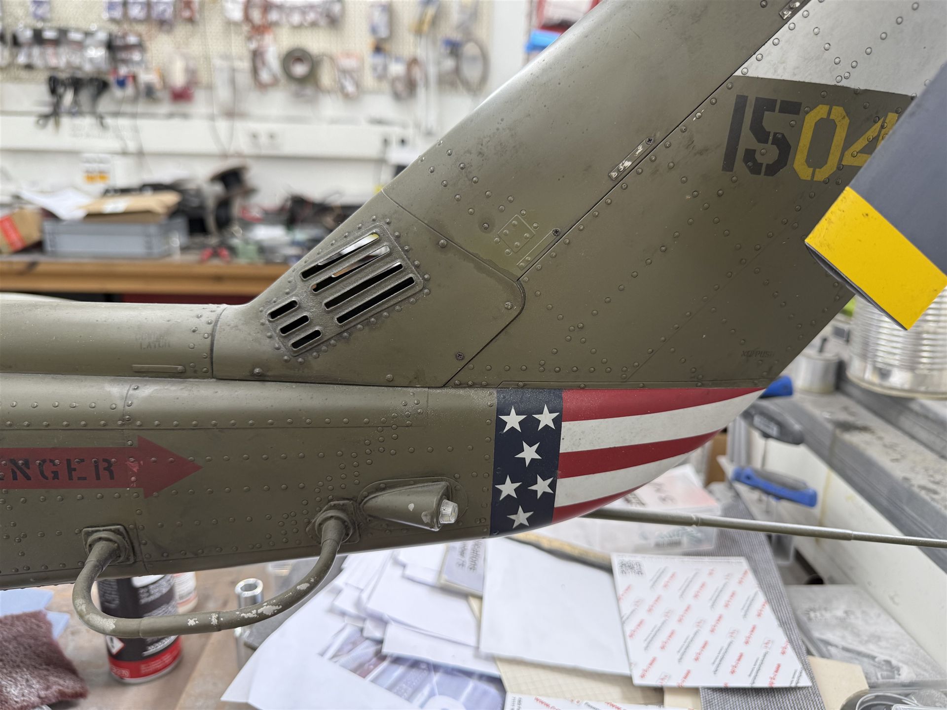 Nach Alouette II, Sikorsky S 58 und Tiger EC 665 ist die Bell 204-B das nächste Modell das wir mit Blechstößen, Nieten- und Schrauben-Nachbildung so aufbereiten das wir stolz sagen können ein super scale Modell zu präsentieren.